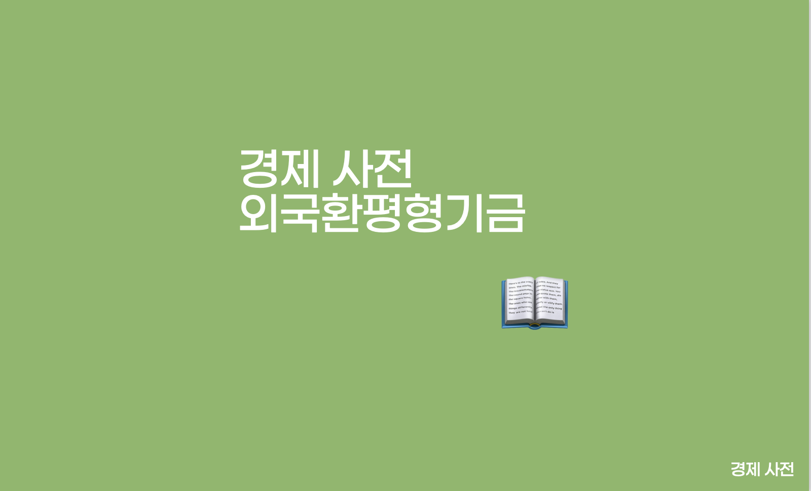 쉽게 설명해 정부가 만일의 사태를 대비해 달러같은 외국 돈을 모아 두는 것입니다. 갑자기 우리나라 돈이 갑자기 가치가 떨어져서 물건 값이 엄청 비싸지면, 정부가 이 외평기금을 꺼내서 문제를 해결하는데 사용합니다. 이렇게 비상시에 사용하도록 일정 수준의 외국 돈을 가지고 있도록 하고 있습니다. 1997년 외환위기 당시 국가 부도 직전까지 몰렸던 경험을 교훈 삼아, 외평기금은 경제 위기 시 방파제 역할을 하도록 설계되었습니다.
